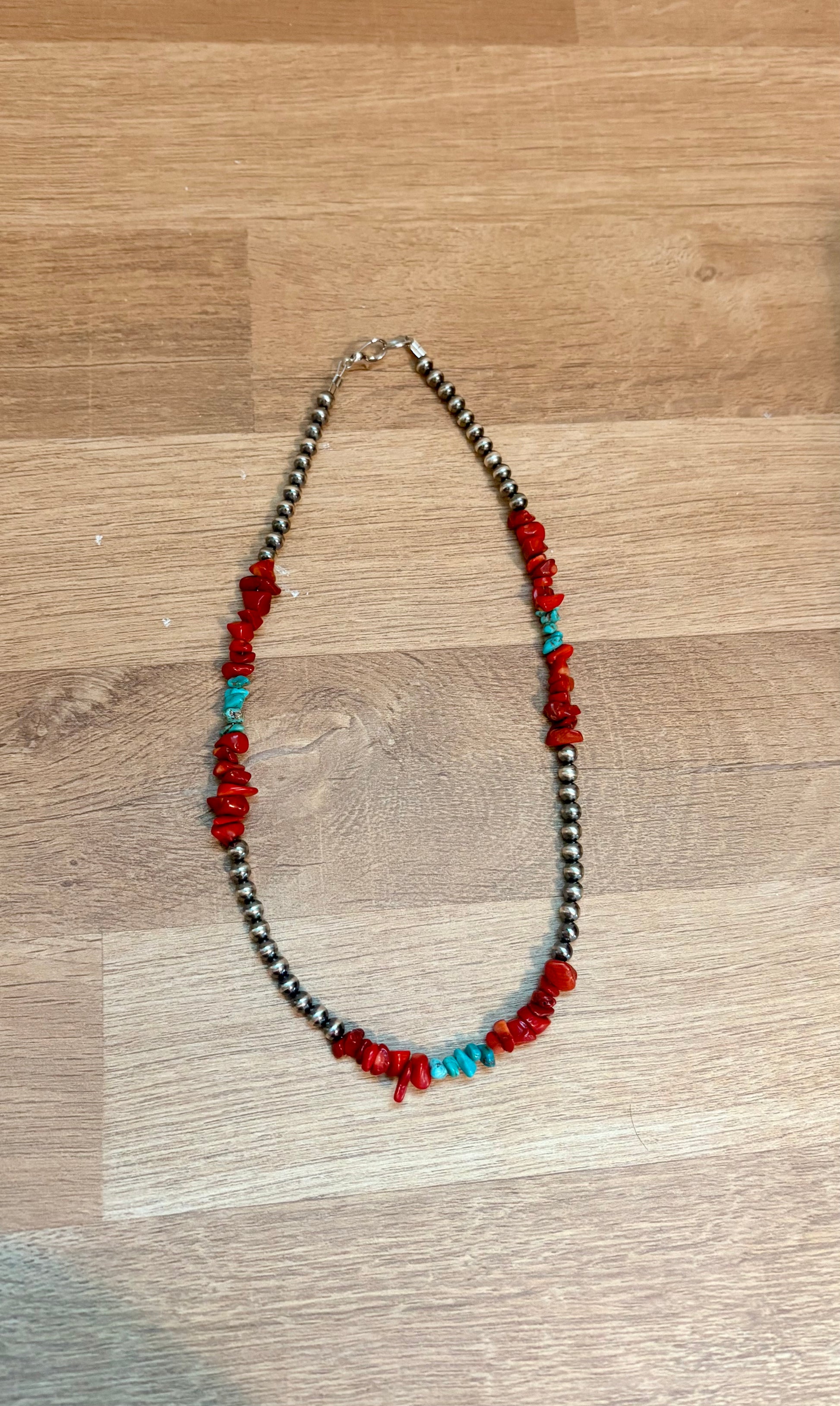16" red and turquoise necklace with 5mm pearls