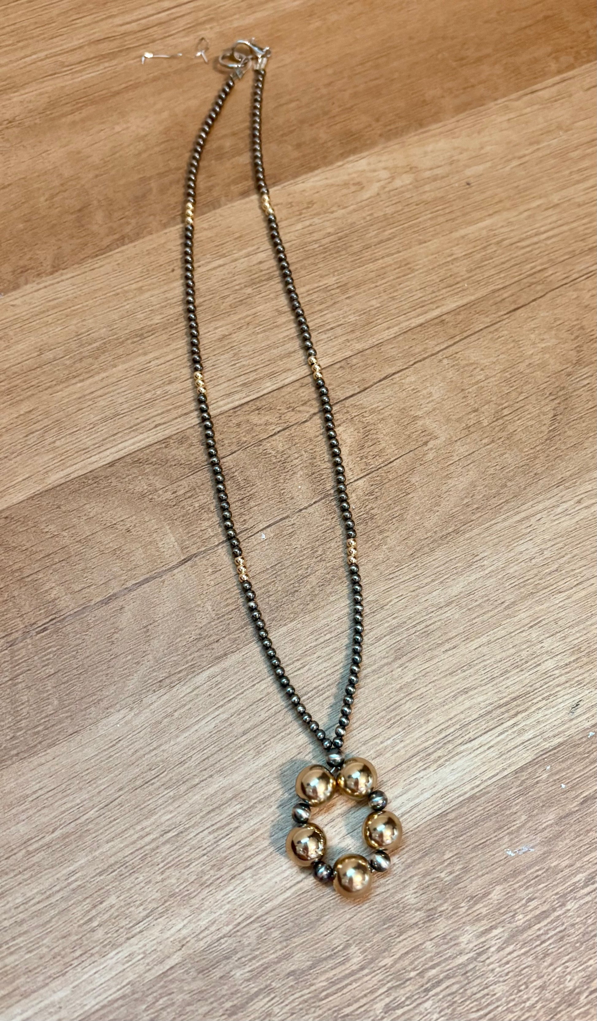 18" necklace with 3mm sterling silver pearls and gold beads, and 10mm gold beads and 5mm sterling silver pearls